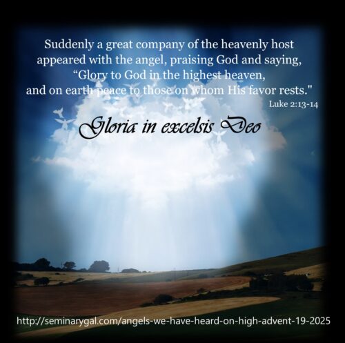 In the flow of Scripture, Mary and Joseph are likely on their journey from Nazareth to Bethlehem for the census. The shepherds were probably already in the hilly countryside, watching their flocks. The angels were eagerly watching as the mystery of how God was going to save His Image-bearers unfolded. Everyone was where they needed to be. But the angels had special interest since they’d been waiting since the fall of man to see how God was going to reconcile a world to Himself. No surprise they sang in awestruck wonder!