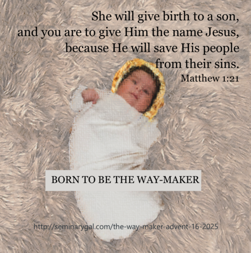 You see, Jesus’ birth wasn’t an afterthought, a plan B, or a countermove. It was the plan all along and from before all Creation. Jesus is the Way, the Truth, and the Life. He is the Way Maker for you and me.
