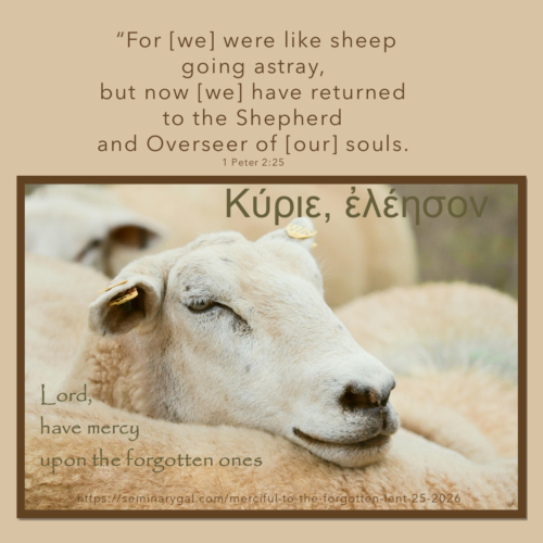 You can find these “Κύριε, ἐλέησον, ‘Lord, have mercy” devotionals here or you can “Like” Seminary Gal on Facebook and they’ll be delivered to your Facebook news feed. Advent and Lenten devotionals remain among my most popular offerings. You don’t want to miss this encounter with God to prepare your heart for Easter!